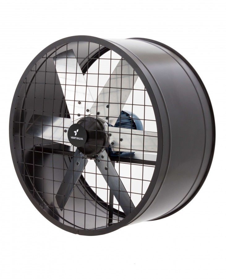 Fabricado em chapa de aço carbono com pintura eletrostática preta, possui hélice de 6 pás em alumínio especial, garantindo desempenho superior na movimentação do ar. O sistema mancalizado com rolamentos de esfera assegura operação silenciosa e confiável. Além disso, conta com grade externa de proteção, oferecendo segurança total durante o uso.
